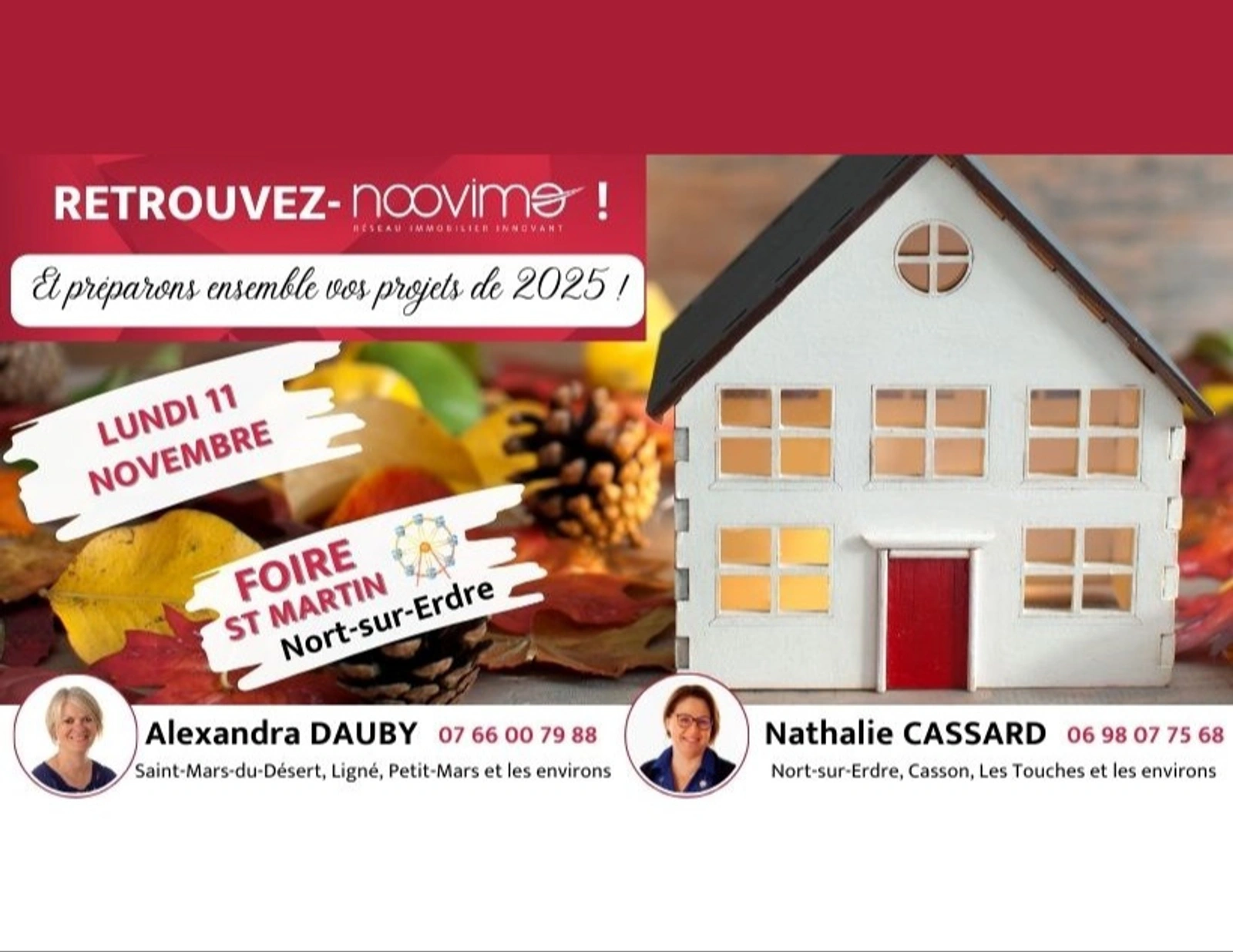 👉 Alexandra DAUBY et Nathalie CASSARD, vos Conseillères en immobilier près de chez vous, seront présentes à la Foire Saint-Martin de Nort-sur-Erdre 𝐥𝐮𝐧𝐝𝐢 𝟏𝟏 𝐧𝐨𝐯𝐞𝐦𝐛𝐫𝐞 pour vous rencontrer et répondre à toutes vos questions.
