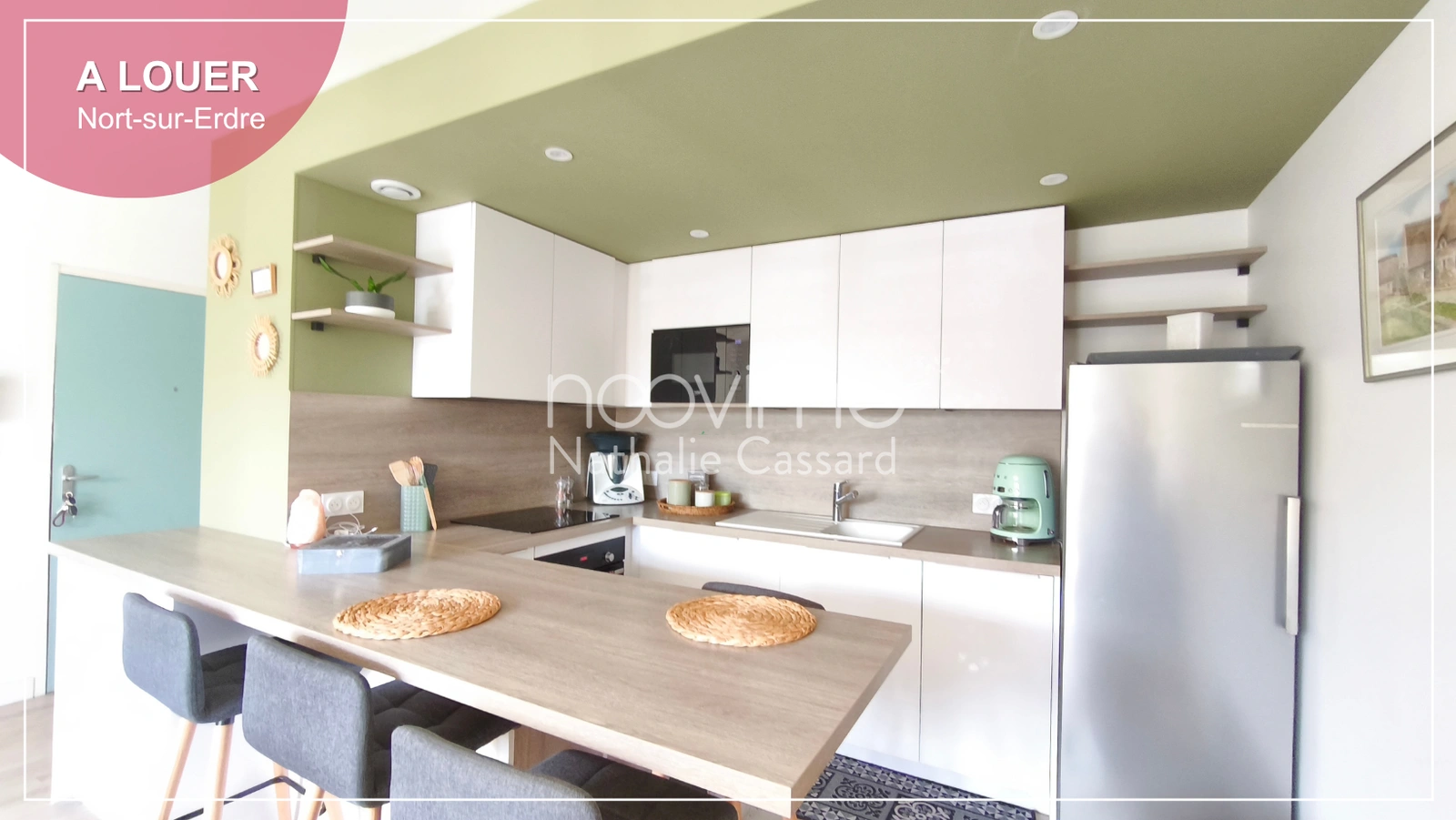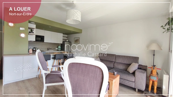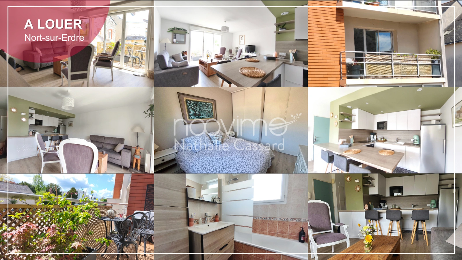 À LOUER - Appartement LUMINEUX T2 de 52 m2 au coeur de Nort-sur-Erdre ! LIBRE MI-MAI ! en PLEIN COEUR de NORT-SUR-ERDRE, venez découvrir, cet appartement lumineux de 3 pièces situé au 1er étage d'une petite résidence. Idéal pour un cadre de vie agréable et fonctionnel. À proximité immédiate de toutes les commodités : commerces, écoles, transports, services. Caractéristiques : Type : Appartement T2, Niveau : 1er étage sans ascenseur, Surface habitable : 52,13 m2 Carrez (surface au sol 58,54 m2) DPE C (150) GES A (5) Chauffage et ballon d'eau chaude électrique. Disposition : 1 entrée avec deux placards dans le couloir desservant la partie nuit, 1 pièce de vie lumineuse avec cuisine aménagée et équipée en 2024 (hotte, plaque induction, four, micro-onde et lave-vaisselle) ouverte pour une surface de 26,37 m2 au total, 1 chambre de 11,51 m2 avec 2 grands placards. 1 Salle de Bain avec rangement, 1 Buanderie de près de 4 m2 pour la machine à laver et du rangement 1 WC indépendant, 1 balcon de 6,41 m2 orienté Sud, 1 emplacement de parking. Conditions financières : Loyer mensuel : 680 EUR hors charges Charges : 40 EUR (provisions mensuelles des charges de copropriété avec régularisation annuelle ) Loyer total charges comprises : 720 EUR Dépôt de garantie : 680 EUR Honoraires locataire : 577 EUR TTC, dont 157 EUR pour l'état des lieux. ATTENTION DOSSIER ETUDIER AVEC LA GLI Le dépôt des dossiers se fait sur le site Zelok à https://www.zelok.fr/ de NOOVIMO NATHALIE CASSARD Aucune visite ne sera organisée sans validation du dossier en GLI. Nos honoraires sont consultables sur : www.noovimo.fr. Ref : NCD-0026156. Annonce rédigée et publiée par un Agent Mandataire indépendant Noovimo inscrit au RSAC de Nantes sous le No 508 081 858 Les informations sur les risques auxquels ce bien est exposé sont disponibles sur le site Géorisques : www.georisques.gouv.fr 1 - Annonce rédigée et publiée par un Agent Mandataire -