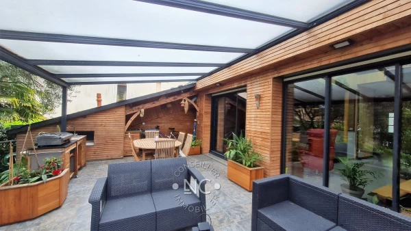 Votre conseillère en immobilier Nathalie CASSARD, vous propose : un COUP DE COEUR assuré pour cette MAISON FAMILIALE d'environ 180 m2 de 1987 proposant 5 CHAMBRES, en CENTRE-VILLE de NORT-SUR-ERDRE. L' ENTRÉE accueillante dessert un BUREAU qui peut devenir une CHAMBRE, une PIÈCE DE VIE lumineuse gràce à ses LARGES BAIES de type LOFT lui confèrant un CARACTÈRE UNIQUE et ATYPIQUE, avec vue sur un JARDIN PAYSAGÉ er ARBORÉ par une TERRASSE COUVERTE de presque 30 m2 amenant à une Dépendance d'environ 48 m2, actuellement utilisée en ATELIER accompagné d'un poulailler. Aussi vous trouverez au rez de chaussée une CUISINE A/E séparée du SALON par une VERRIÈRE, une RÉSERVE, un couloir deservant une BUANDERIE et des TOILETTES. Vous accédez au 1er étage par un ESCALIER en MÉTAL style LOFT. La MEZZANINE y est assez GRANDE pour vous proposer un ESPACE DÉTENTE avant de vous amener à 2 BELLES CHAMBRES dont une agrémentée d'un DRESSING, une SALLE DE BAIN avec Douche et des TOILETTES. Au 2ème ÉTAGE, le PALIER dessert une SALLE D'EAU avec WC, 2 autres CHAMBRES et un RANGEMENT. Pour jouer aux fléchettes entre amis, une CAVE d'environ 25 m2 se trouve sous la TERRASSE en accès par le Jardin. Coté technique, la maison est chauffée au sol au RDC et par des radiateurs aux étages gràce à une chaudière à condensation au gaz de ville. La chaudière se trouve dans un CABANON près de laTerrasse. Le TOUT sur environ 451 m2, A PIED DE TOUT: la Gare et tout les services et les écoles. Cette MAISON sera LIBRE fin 2023. DPE 82 (C), GES 16 (C). Pour plus de renseignements ou une VISITE VIRTUELLE, contactez VITE votre conseillère au 06 98 07 75 68 ou sur ncassard@noovimo.fr Ref: NCD-0016837 Prix de vente : 480 000,00 EUR + 3,80 % d'honoraires soit 498 750,00 EUR honoraires inclus. Honoraires à la charge de l'acquéreur. Nos honoraires sont consultables sur : www.noovimo.fr. Votre agent commercial inscrit au RSAC de Nantes sous le No 508 081 858 - Annonce rédigée et publiée par un Agent Mandataire -