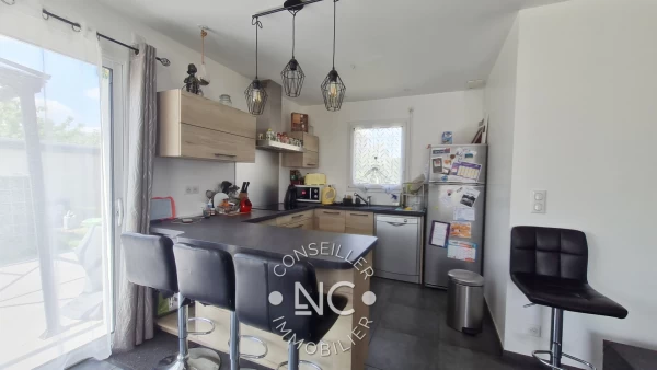 Votre conseillère Noovimo Nathalie CASSARD 06 98 07 75 68 ncassard@noovimo.fr vous propose : De POSER vos VALISES dans cette MAISON FAMILIALE de PLAIN-PIED à NORT-SUR-ERDRE! De fin 2017, elle vous propose 103 m2 de surface habitable en vous accueillant dans une BELLE PIECE DE VIE d'environ 42 m2 avec sa CUISINE OUVERTE AMENAGEE et EQUIPEE. La partie NUIT, isolée par un couloir, dessert 3 CHAMBRES dont une avec DRESSING et les autres toutes pourvues d'un espace rangement, un BUREAU, une SALLE DE BAIN et un WC. Une BUANDERIE fait le lien avec le GARAGE d'environ 15 m2. Elle est raccordée au TAE et étant aux normes RT 2012, elle n'est chauffée que par son poêle à bois et l'eau par un ballon thermodynamique. D'où un très bon DPE en B (67) et GES en A (1). Une TERRASSE d'environ 40 m2 s'offre à vous à l'Ouest de la pièce de vie et réchauffée aussi au Sud. Dans un secteur résidentiel, avec 3 places de parking privative en plus du Garage, sur 741 m2 de parcelle, votre FUTUR NID DOUILLET se trouve à pied des commerces et des écoles par les liaisons douces et à 10 minutes de la Gare. A DECOUVRIR RAPIDEMENT. Appelez le 06.98.07.75.68 pour plus de renseignements. VISITE VIRTUELLE en 360o Honoraires : 4.00 % TTC de 305 000 EUR ( prix de vente honoraires exclus). Soit 317 200 EUR honoraires inclus. Honoraires à la charge de l'acquéreur. Nos honoraires sont consultables sur : www.noovimo.fr. Ref : NCD-0017050.Votre agent indépendant Noovimo inscrit au RSAC de Nantes sous le No 508 081 858 Les informations sur les risques auxquels ce bien est exposé sont disponibles sur le site Géorisques : www.georisques.gouv.fr . - Annonce rédigée et publiée par un Agent Mandataire -